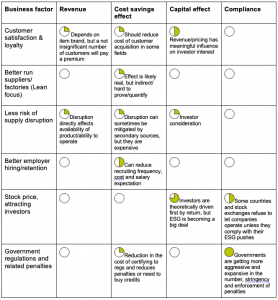 - 意识- 可持续性(或可持续发展中的某些领域)是一个新的主题,缺乏结构化方法,以解释它所包含的各种影响(与传统的P&L框架为明确定义标准化方法)需要投资时间,资源,外部咨询,技术等。